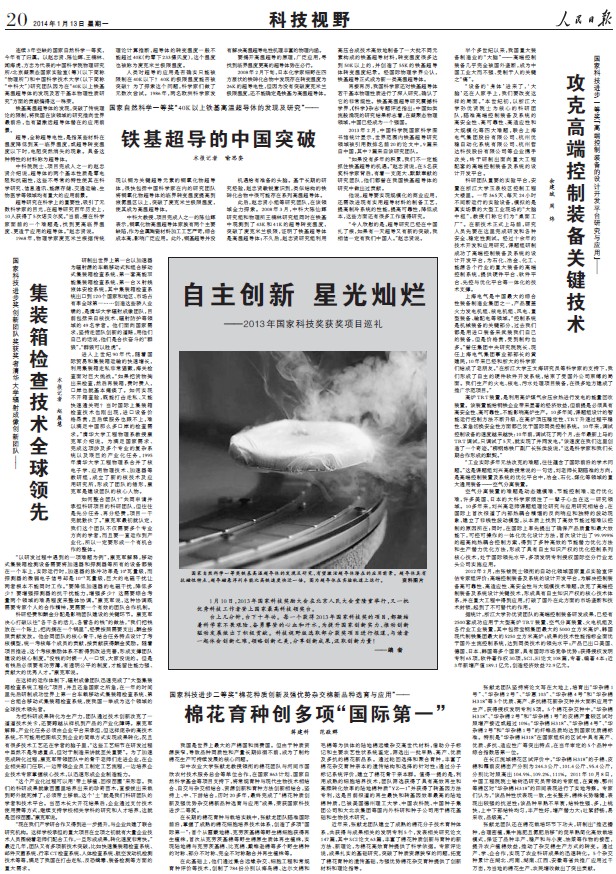 再接再厉,我国科学家还对铁基超导体若干基本物理性质进行了深入研究,确认了它的非常规性。铁基高温超导研究震撼科学界,《科学》杂志专题评述指出:中国如洪流般涌现的研究结果标志着,在凝聚态物理领域,中国已经成为一个强国。