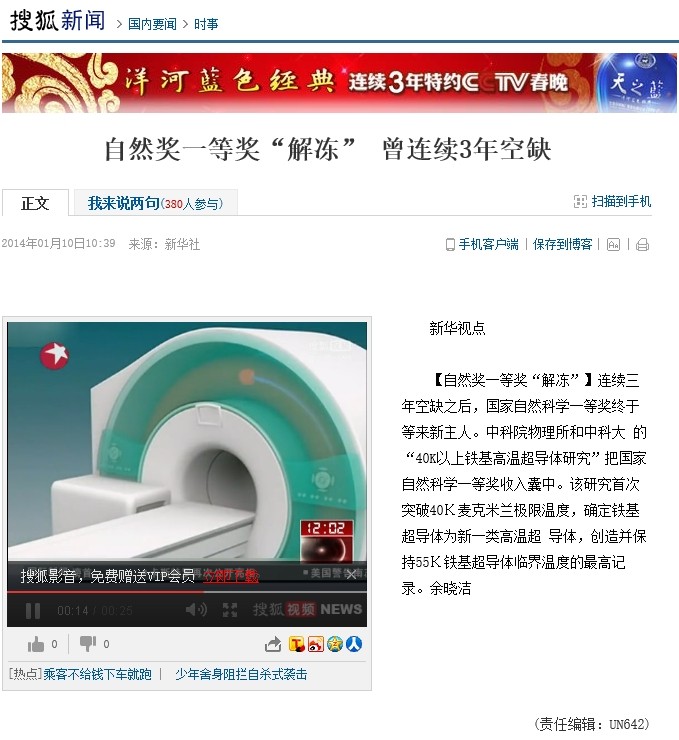 :铁基高温超导成果终结自然科学一等奖3年空缺