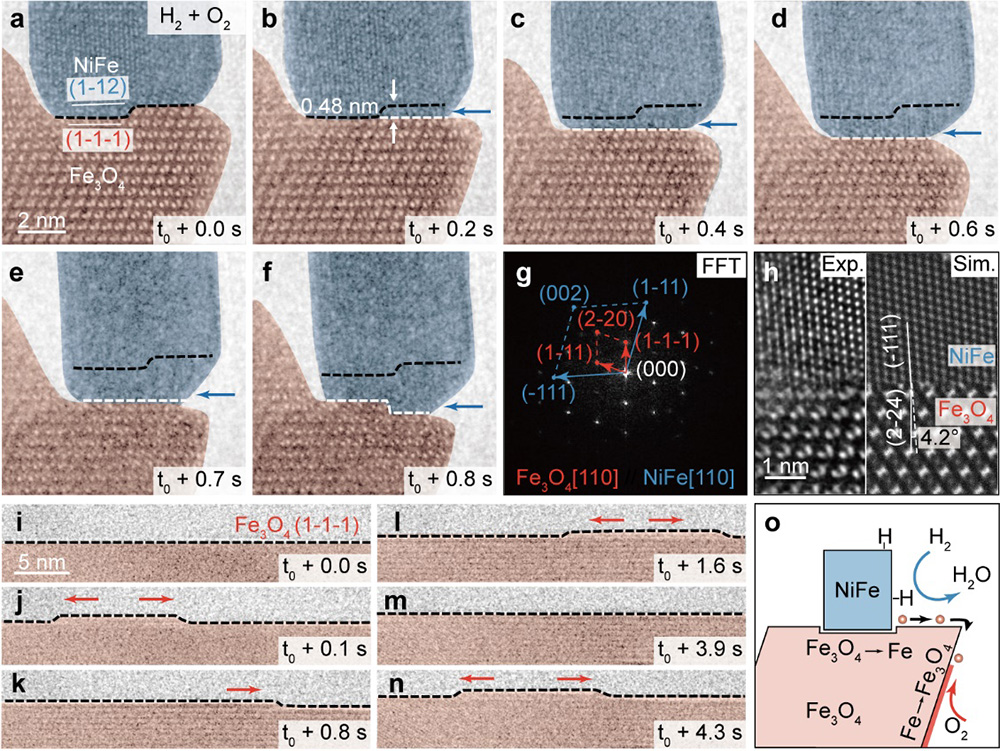 图 | 原子尺度观察NiFe–Fe3O4催化剂上的LMSI动态过程。