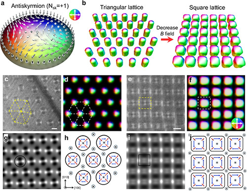 图1 室温下反斯格明子由三角到方形晶格实空间多自由度转变操控