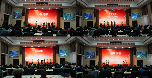 随后,大众参与性游戏热闹开启,职能部门和实验室各派一人,联袂主持。两位主持人活力十足,带领随机选中的参与者将“心有灵犀”的默契挑战进行到底,在你说我猜的过程里,通过寓教于乐的方式,让大家了解到所内工作的方方面面。接着,进入“听音识曲”和“闻声识影”环节:经典的旋律一响起,仿佛时光倒流,回忆与现实在此刻交织;熟悉的电影对白则让大家“闪回”影片,引得现场笑声连连。“趣味问答”里,精心设计的题目连接了物理所的科研与文化,忍俊不禁之外,大家也感受到一份温暖与自豪。